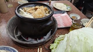 台湾では1年中鍋を食べますが、鴨鍋の「薑母鴨」と羊鍋の「羊肉爐」は冬だけの食べ物です。普通の火鍋は一人鍋屋も多いですが、この2つは4人くらいでちょうどよいので4人で行きました。半屋外の店ですが温まりました。