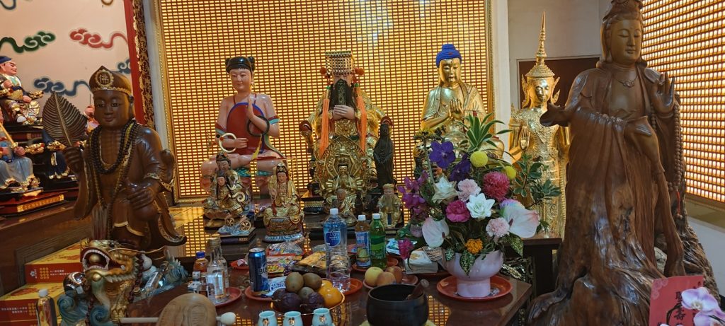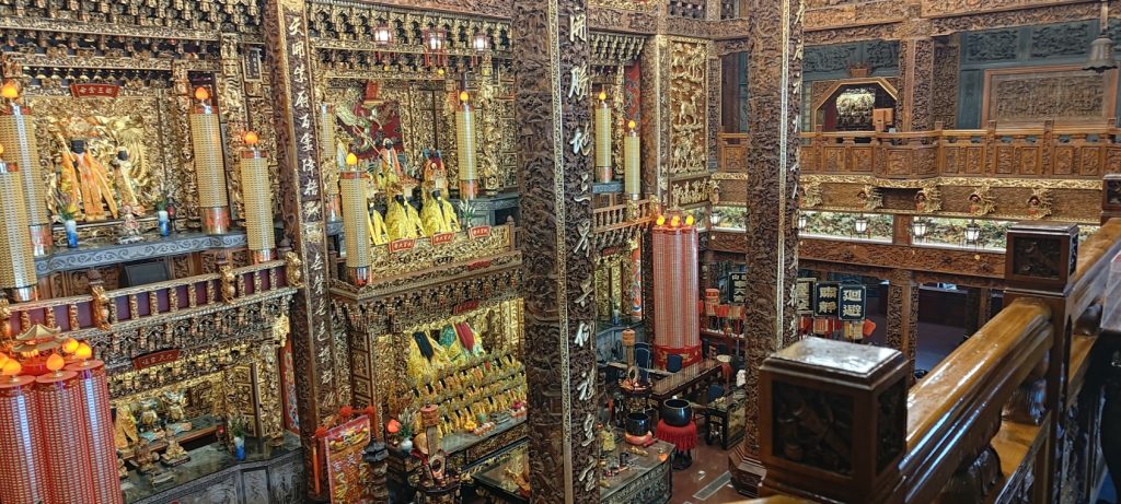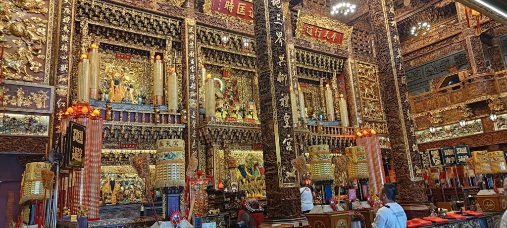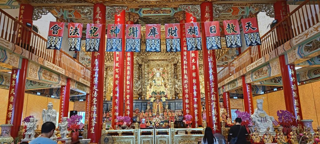 最初に行った奉天宮は規模こそそれほど大きい方ではありませんが、非常に特徴のある造りでした。拝殿の造りが独特で大きな吹き抜け空間が2階まであり、1階からも2階からも立体的に祀ってある6体の道教の神様を見ることができます。