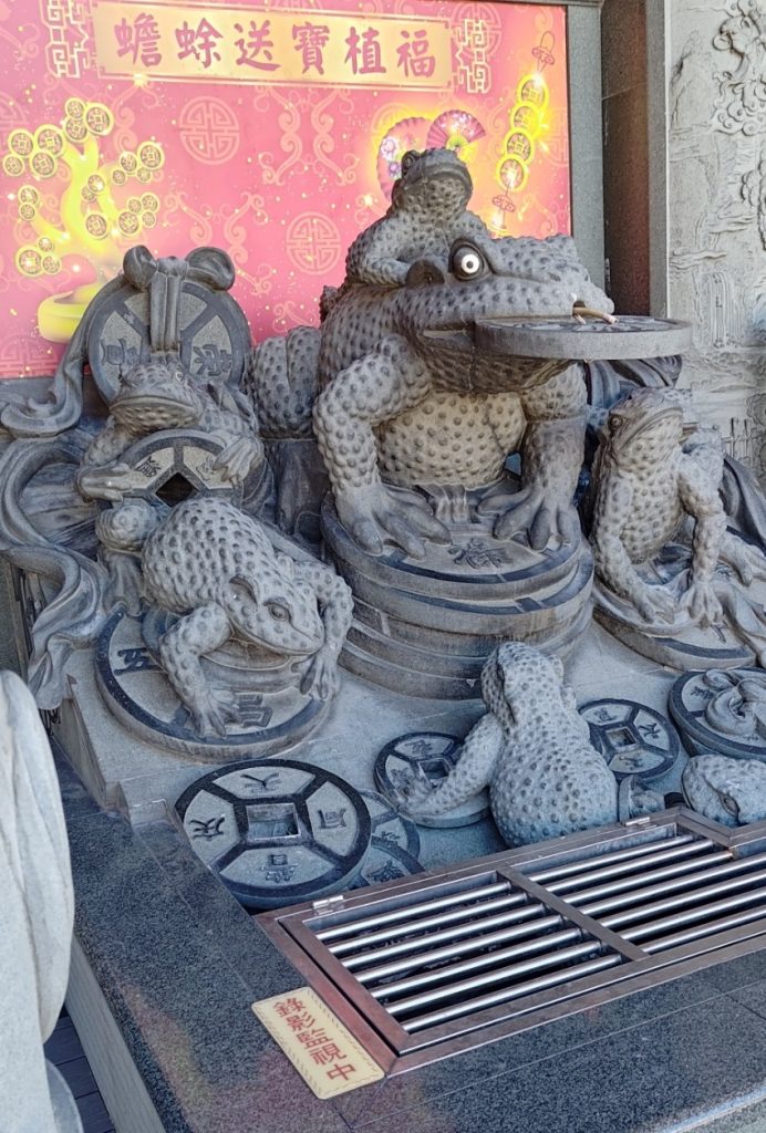 台湾の寺廟は彫刻にこだわっている所が多いのですが、ここは特に動物を彫った彫刻が多かったです。お約束の龍はもちろん、縁起のいい亀、さらに蛙や馬などもありました。いつも思うのですが、透かし彫りの技法を使った彫刻も多いのですが、5センチくらい内側まで彫ってあって技術に驚きます。